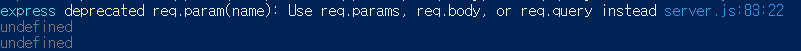 node.js 서버를 구동시킨 cmd상에서는 파라미터값들이 undefined로 출력된다.