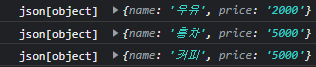 형태는 key값(name,price)에맞는 각각의 value에 해당하는 데이터들에 접근한다.