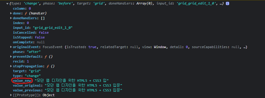 객체 속성들중 value_new 속성에 onChange이벤트가 발생하면서 수정된 데이터를 저장받아준다.