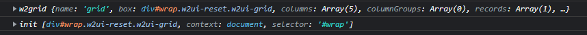 콘솔에 출력시켰을때 $('#wrap')을 포함한 w2grid라는 이름의 데이터를 가지고있다.