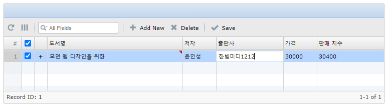 해당 코드를 입력하고 페이지를 실행 후 AddNew 버튼을 클릭한다.