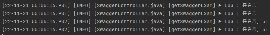 LOGGER.info("로그 테스트 : "+ name + ", " + age);