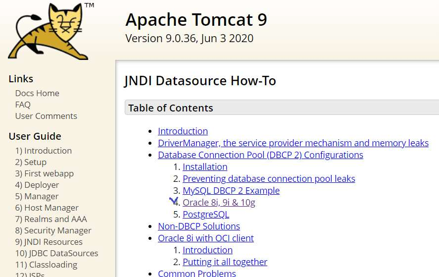 2. User Guide에서 10번 JDBC DataSources를 선택합니다.