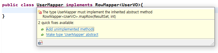 mapRow라고 불리는 메서드를 오버라이딩 해달라는것 입니다.