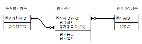 | 101) 아래와 같인 데이터 모델에서 평가대상상품에 대한 품질평가항목별 최종 평가 결과를 추출하는 SQL문장으로 옳은 것은? (단, 평가항목에 대한 평가(평가등급)가 기대수준에 미치지 못할 경우 해당 평가항목에 대해서만 재평가를 수행한다.) |