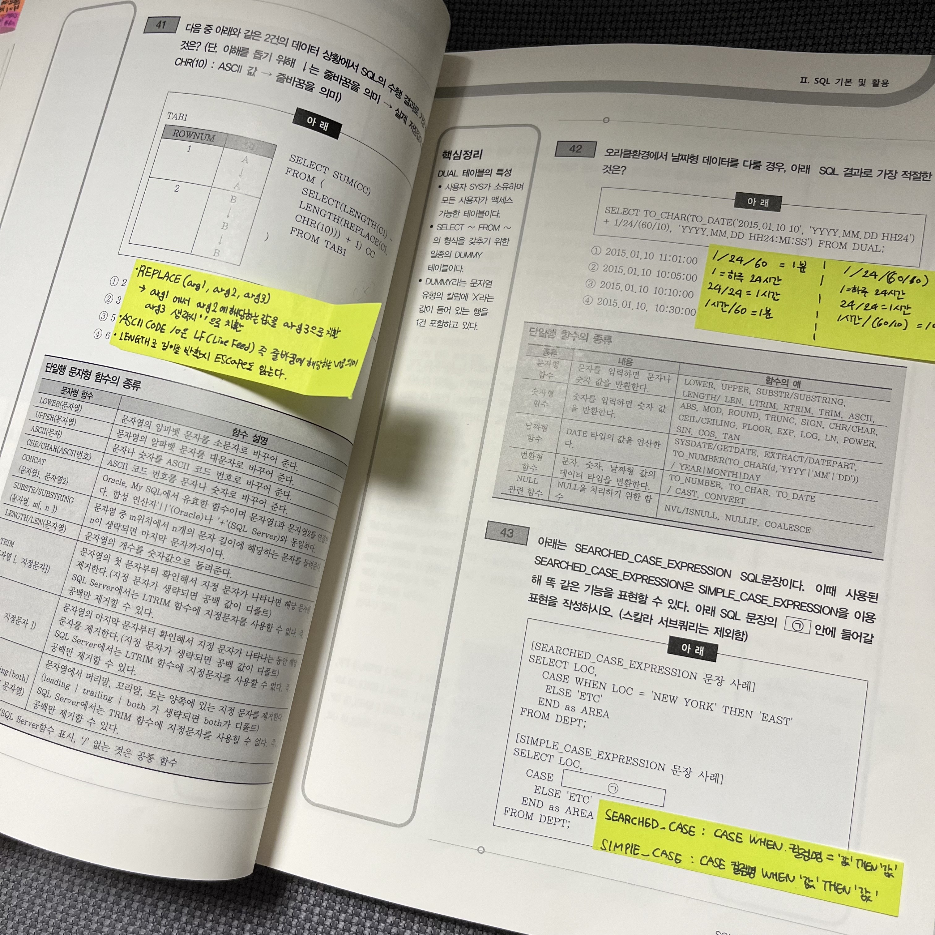저는 추후에 SQLP 자격증을 딸 목표를 갖고있기에, 틀린문제에 대한 오답노트를 책에 직접 메모를 하기보다 문제마다 포스트잇으로 개념을 정리해서 붙혀뒀습니다.