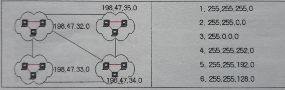 ▶ 아래 <네트워크 구성도>와 같은 환경에서 슈퍼넷(Supernet)을 구성하려고 한다. 이때 가능한 슈퍼넷 마스크(Supernet Mask)에 해당하는 값을 보기에서 하나 선택하시오.