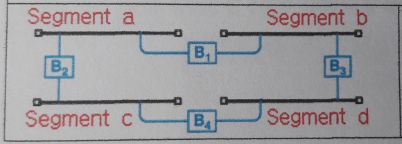 | # Segment a~d : 브리지, 라우터, 허브 또는 스위치 등에 의해 묶여있는 네트워크의 한 부분을 말함. # B1 ~ B4 : 브리지(Bridge) |